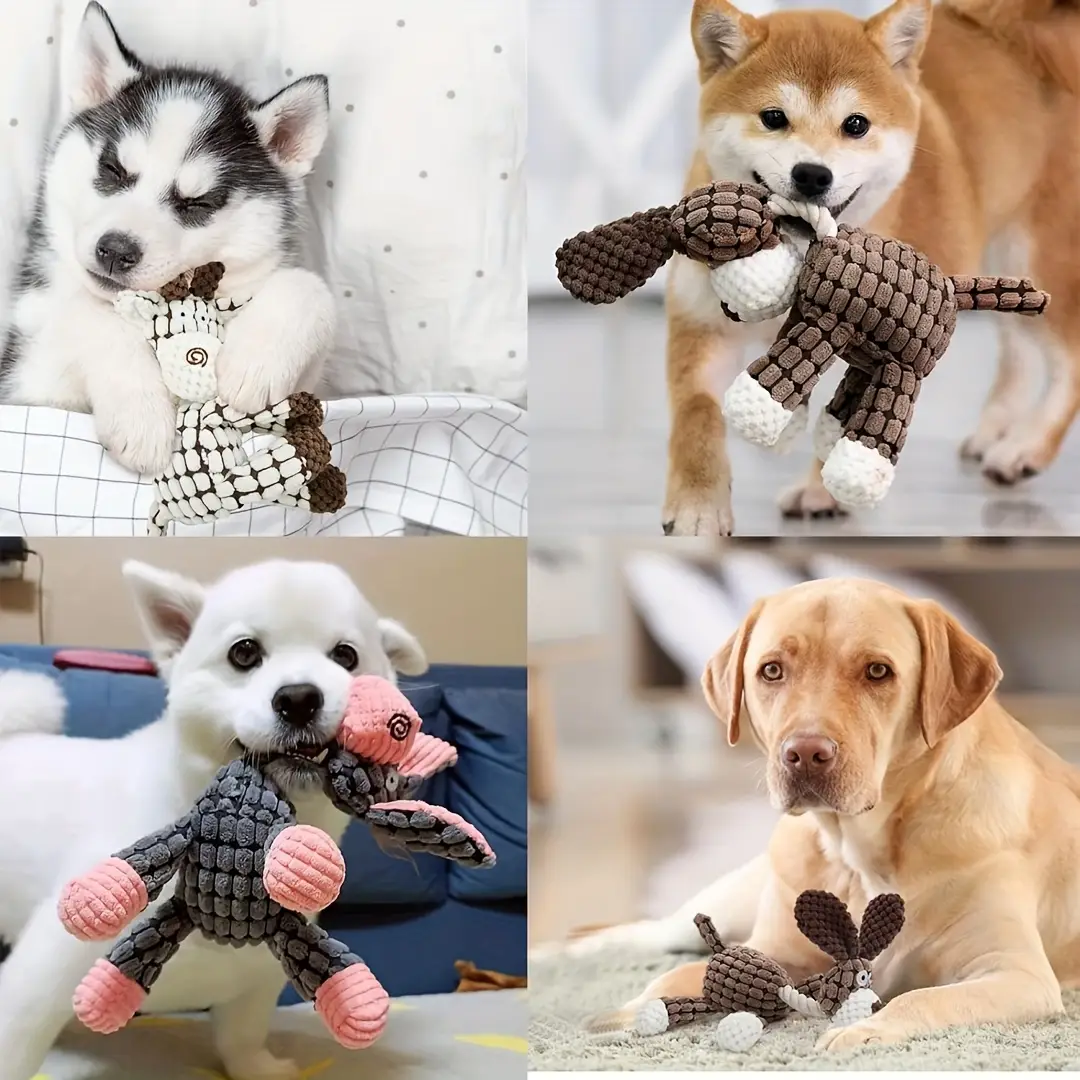 Laat jouw pup ravotten met zijn nieuwe favoriete speelmaatje! Deze vrolijke pluche dieren zijn ontworpen voor jonge, speelse pups met scherpe tandjes en eindeloze energie. De unieke structuur en zachte textuur stimuleren het natuurlijke bijtgedrag op een veilige manier.
