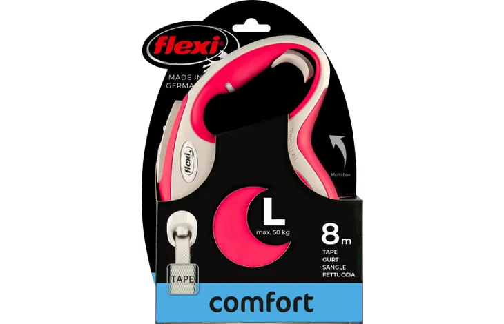 Het unieke voordeel van de flexi -lijn bestaat eruit dat ze de natuurlijke beweging -en verkenningsdrang van de hond garandeert. Het baasje kan toch de veilige controle over de hond behouden.