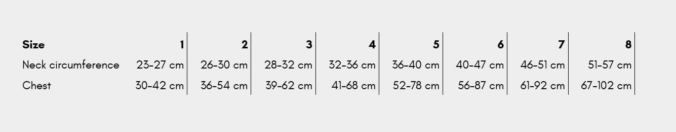 De Line Harness 5.0 – Rachel Pohl editie is verkrijgbaar in de maten 1 tot 8, geschikt voor zowel kleine als grote honden.