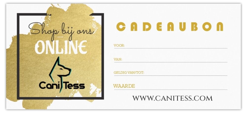 Op zoek naar een cadeau voor een hondenliefhebber, sportieve baas of fokker? Met de CaniTess Cadeaubon geef je altijd iets dat in de smaak valt!