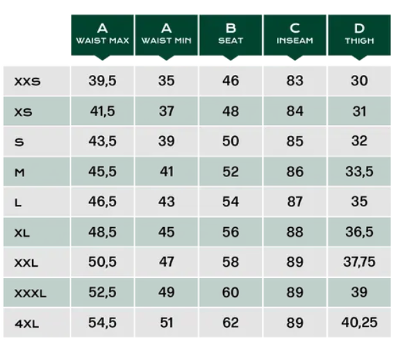 - Duurzaam 4-way stretchmateriaal over taille, kruis en knieën