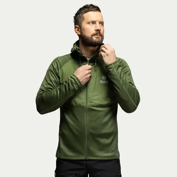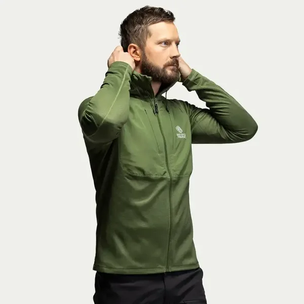 Dunne licht gevoerde microfleece hoodie voor heren. Het licht gevoerde fleece waarvan de jas is gemaakt houdt de warmte goed vast terwijl het ook nog eens goed ademt. Bedoeld als tussenlaag, bijvoorbeeld onder een shelljas, of als jas/trui bij een wat milder klimaat. De gevoerde binnenzijde werkt in combinatie met een flexibele stretch bijna verslavend.