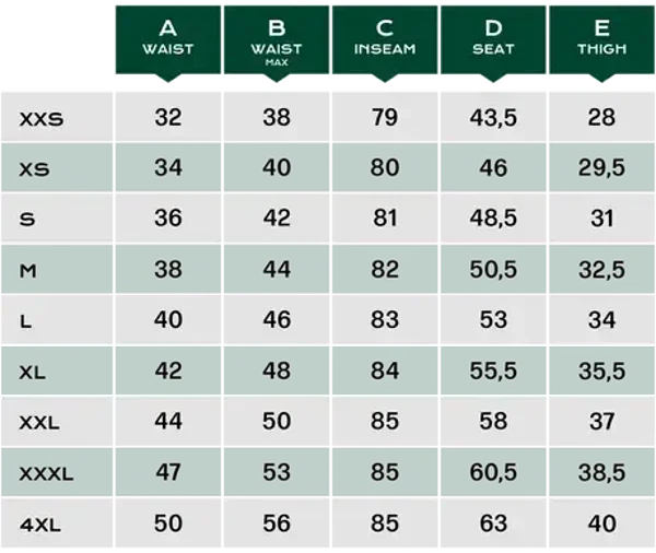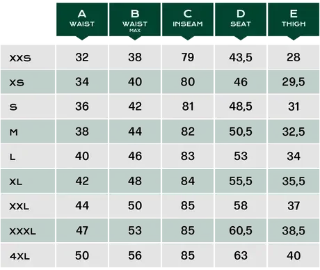 - Duurzaam 4-way stretchmateriaal over taille, kruis en knieën