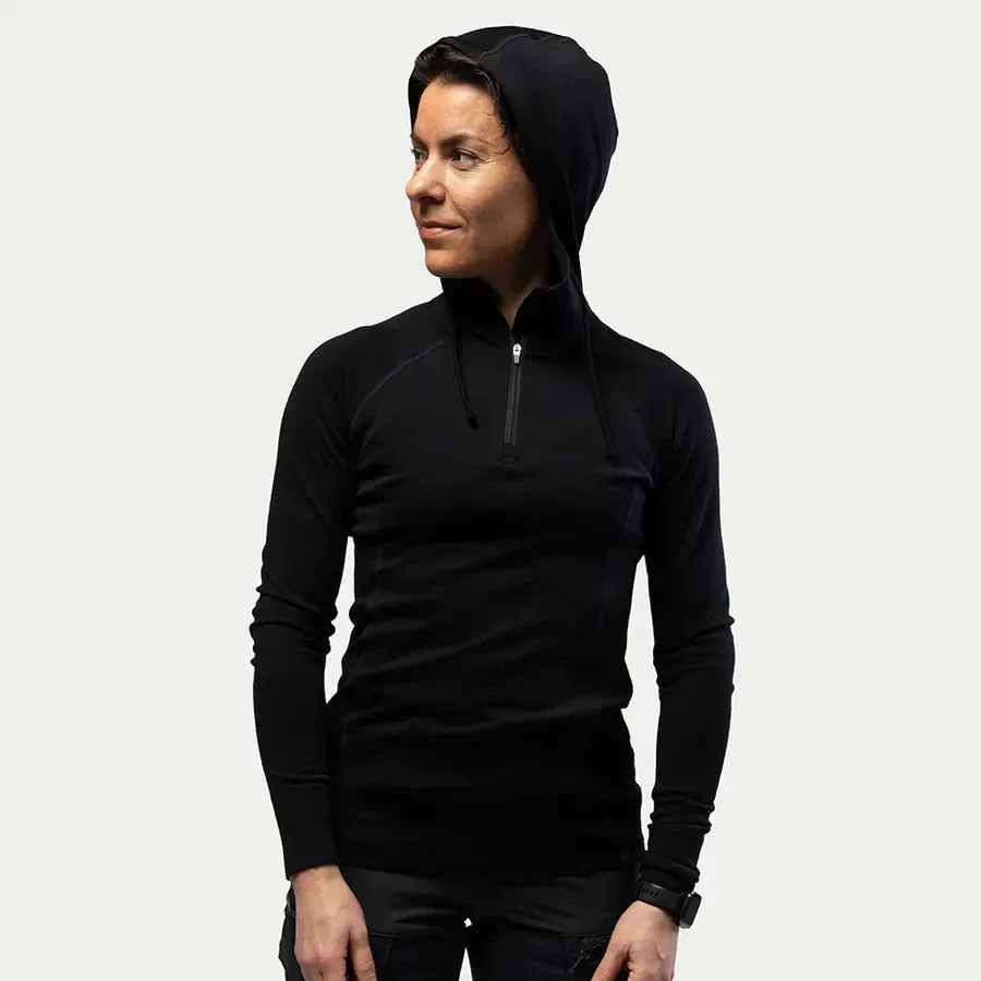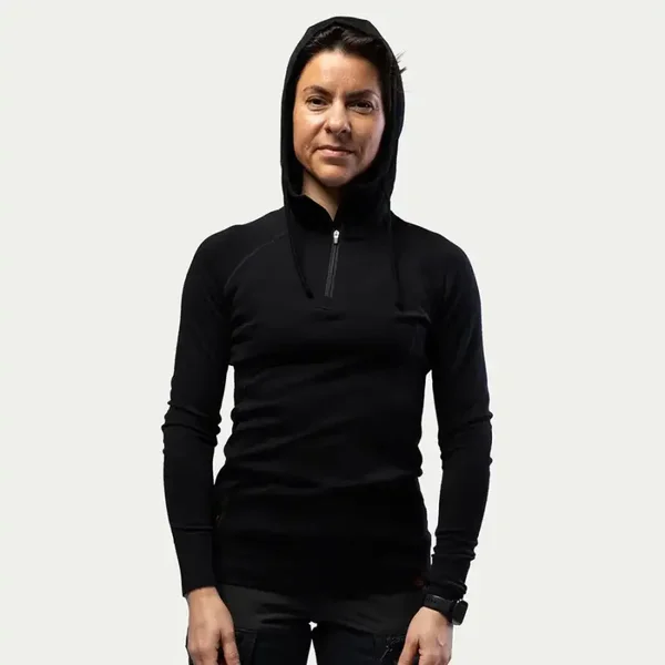 Met een relaxte pasvorm biedt deze hoodie comfort gedurende de hele dag, of je nu op pad bent in de natuur, bij een kampvuur zit of door de stad loopt. De halve rits zorgt voor gemakkelijke temperatuurregeling, terwijl de verstelbare capuchon extra bescherming biedt tegen de elementen. Dankzij het veelzijdige ontwerp functioneert het perfect als basis- of tussenlaag in koude omstandigheden of als zelfstandige trui in mildere temperaturen.