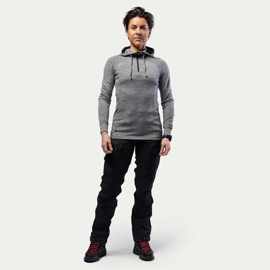Gemaakt van 50% gerecycled materiaal, is de BN105 Merino Half Zip Hoodie een milieubewuste keuze, zonder in te leveren op prestaties. Dankzij het moderne design ziet hij er niet alleen geweldig uit in de natuur, maar ook in de stad – een perfecte combinatie van functionaliteit en stijl.