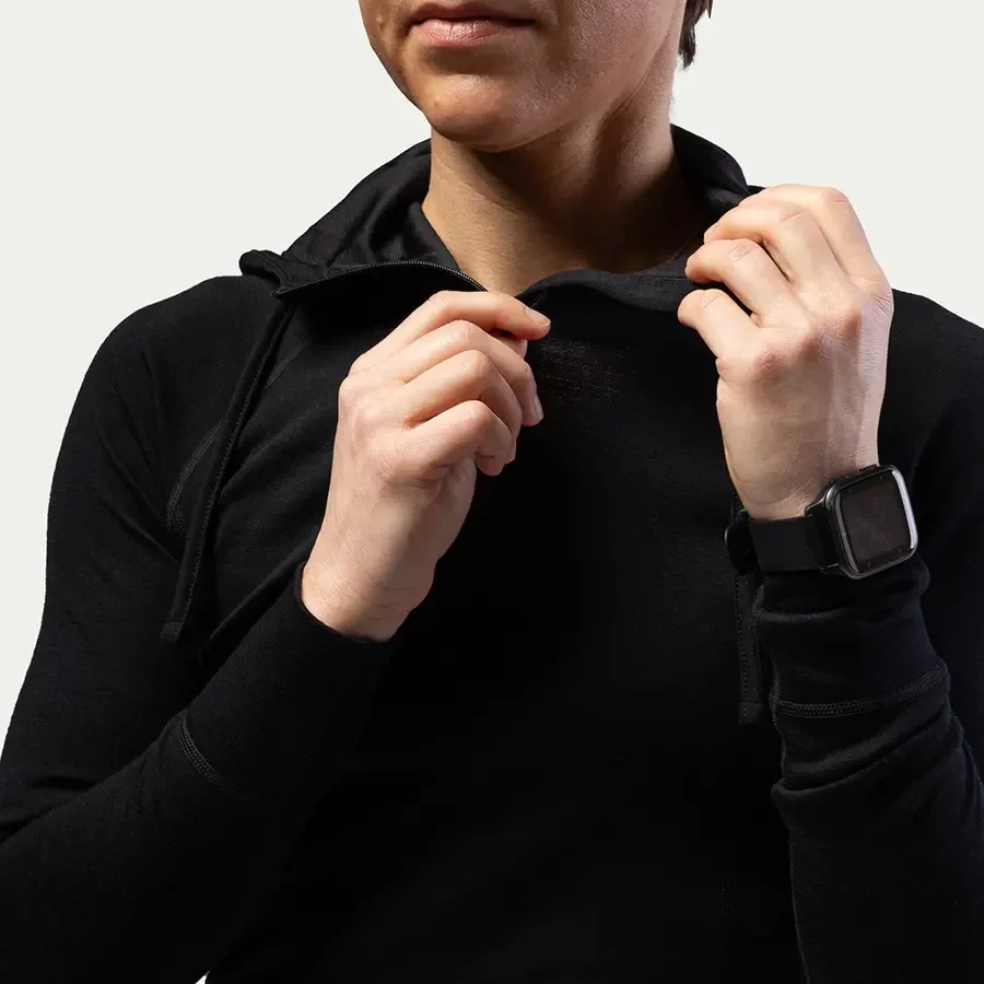 De BN105 Merino Half Zip Hoodie is de perfecte combinatie van prestaties, stijl en duurzaamheid. Gemaakt van 50% merinowol en 50% gerecycled polyester, combineert deze hoodie de natuurlijke warmte en ademend vermogen van merinowol met de duurzaamheid en vochtafvoerende eigenschappen van gerecycled polyester.