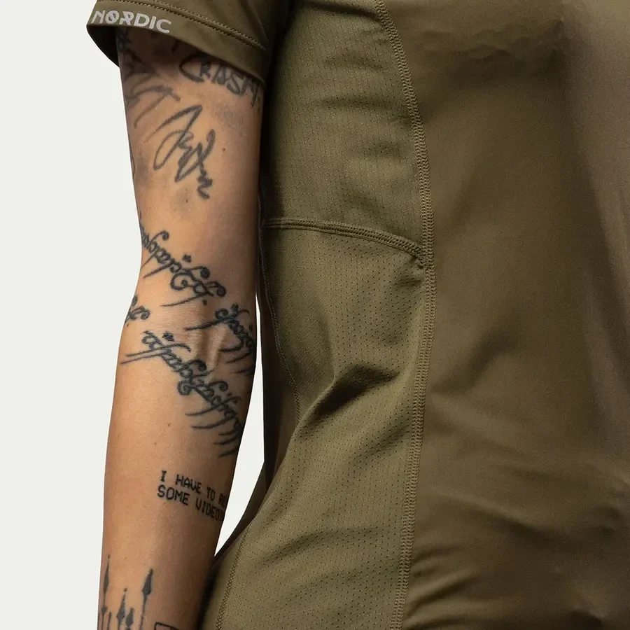 Het BN205 Performance T-shirt voor dames is zeer geschikt voor warme zomerdagen en fysiek veeleisende avonturen. Gemaakt van een zacht, flexibel materiaal met volledige stretch en mesh panelen aan beide zijden voor extra ventilatie. De sneldrogende stof voert vocht efficiënt af van het lichaam tijdens alle soorten fysieke activiteit. Een reflecterend Beyond Nordic logo op de achterkant van de schouders en een logopatch op de voorkant maken dit eenvoudige maar doeltreffende ontwerp compleet.