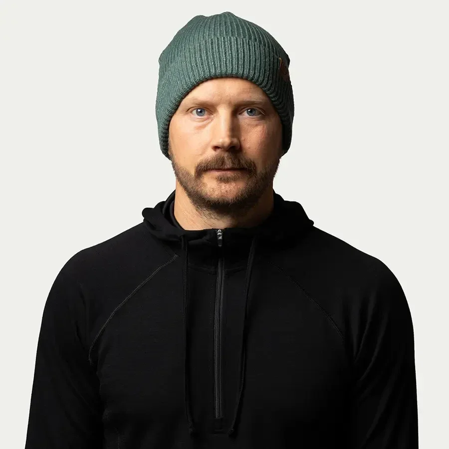 Ribgebreide muts van merinowol met een nauwsluitende pasvorm rond de oren voor veel warmte. Perfect als een alledaags accessoire of voor als je op avontuur bent. Het stijlvolle en discrete logo in PU-leer aan de rand van de muts zorgt dat de muts op twee manieren kan worden gedragen: met de rand omhoog gevouwen of volledig uitgevouwen voor een meer relaxte look.