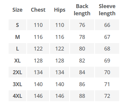 Pasvorm: Het jack valt normaal uit. Vrouwen kunnen één maat kleiner kiezen dan hun gebruikelijke maat.
