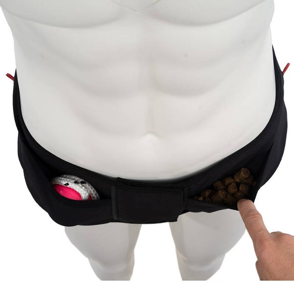 Onze multifunctionele riem is nauwelijks merkbaar bij het dragen van donkere broeken en zit niet in de weg tijdens de training. Bij het ontwerp van deze riem hielden we rekening met onze eigen proefvoorbereiding. Je hond zal niet automatisch een beloning verwachten alleen omdat je je gebruikelijke trainingskleding draagt.