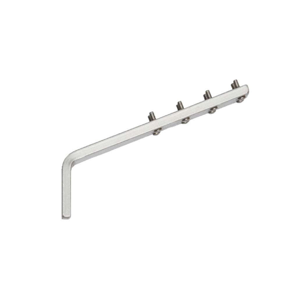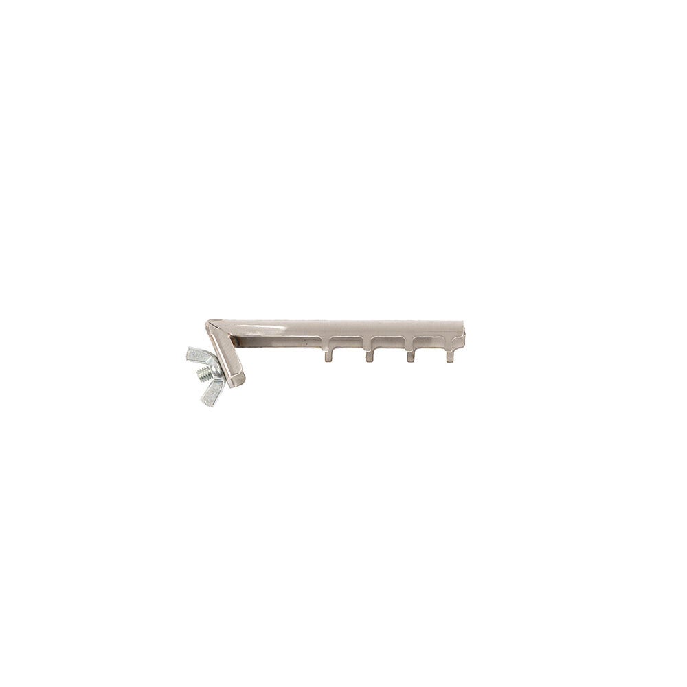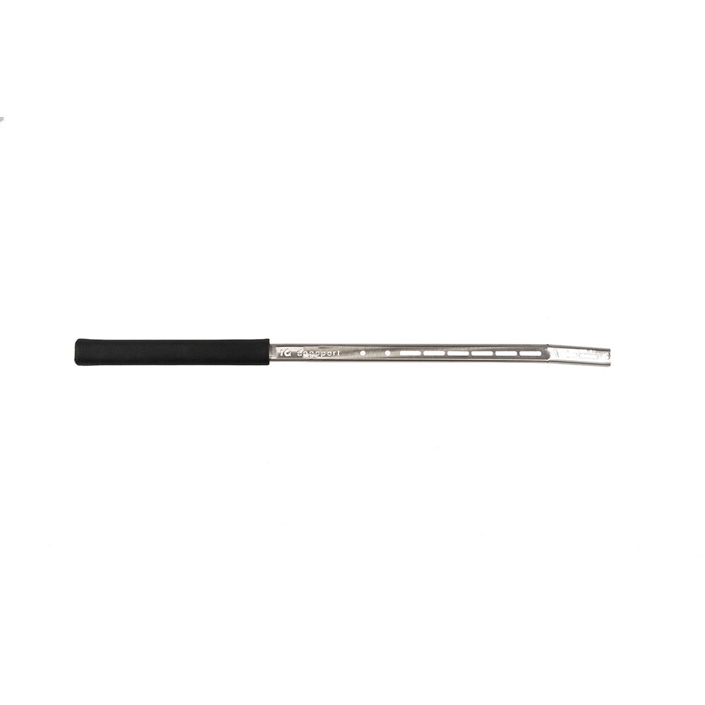 Het afneembare hoekstuk wordt met een vleugelschroef aan de Position Stick bevestigd. We gebruiken het hoekstuk als de hond te dicht komt of zelfs tegen het been van de handler duwt. Dit is waar het hoekstuk van pas komt: we plaatsen het hoekstuk precies bij het been van de handler om de positie van de hond te begeleiden.