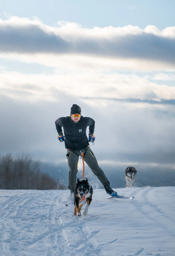 De jas is gemaakt van lichtgewicht, winddicht en waterafstotend softshellmateriaal en houdt warmte vast, zelfs bij harde wind of hoge snelheden tijdens het skiën of fietsen met je hond.