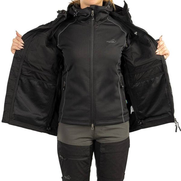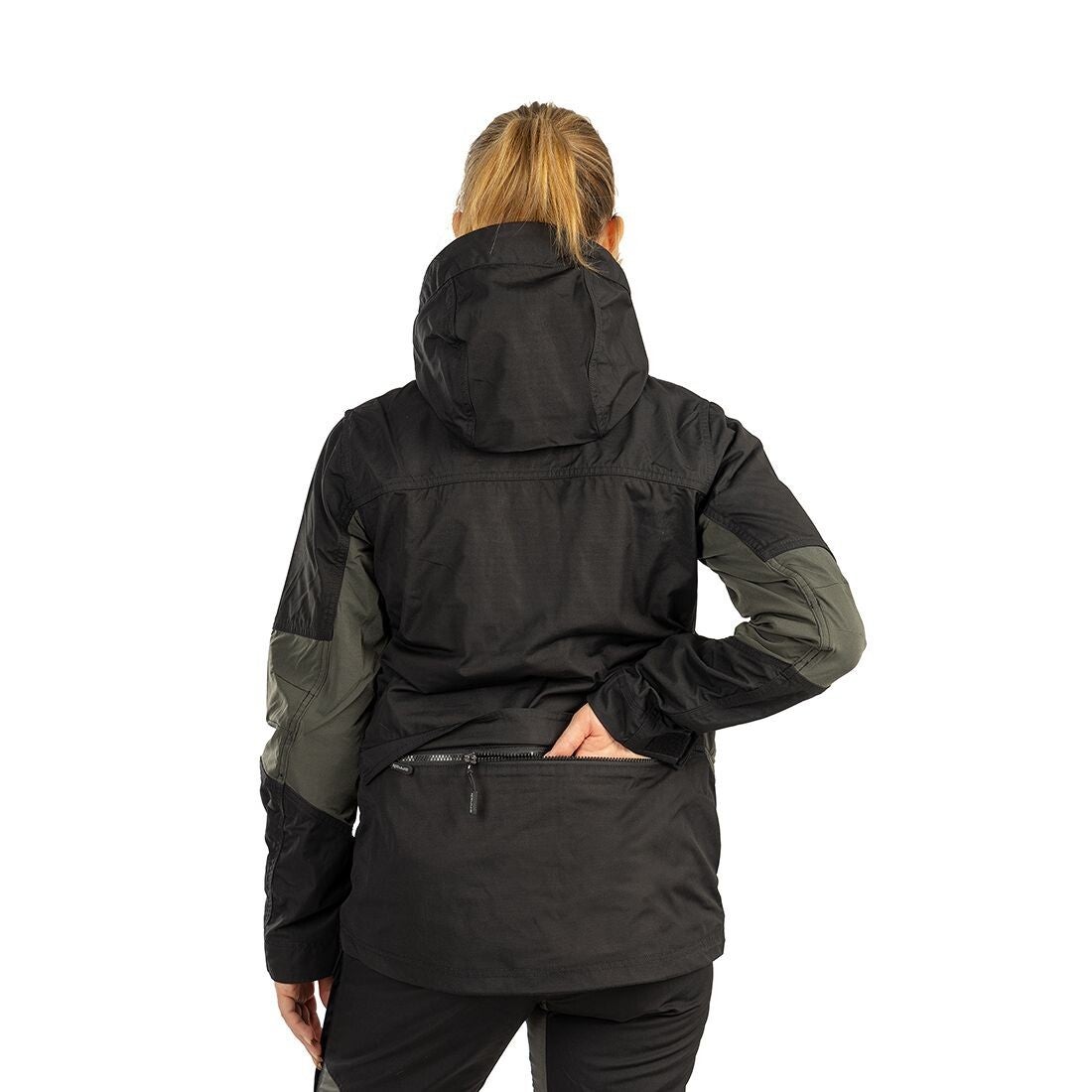 Verder beschikt de jas over een 2-weg rits aan de voorkant, een verstelbare capuchon en verstelbare mouwuiteinden met klittenband. Een praktische D-ring met karabijnhaak maakt het gemakkelijk om accessoires te bevestigen. De taille is licht getailleerd voor een mooie pasvorm.