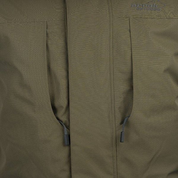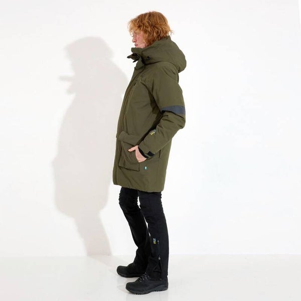 De parka heeft een grote achterzak, twee voorzakken met klep en handzakken aan de zijkant met een warme microfleece voering. In de linker voorzak zit bovendien een uitneembaar snoepzakje. Verborgen borstzakken met rits. Aan de binnenkant, langs de knopenrij, zit een binnenzak met rits. Daarnaast zijn er twee grote mesh binnenzakken — perfect voor handschoenen of extra spullen. De jas heeft een 2-weg rits aan de voorkant, een grote stevige verstelbare capuchon en gebreide manchetten aan de polsen.
