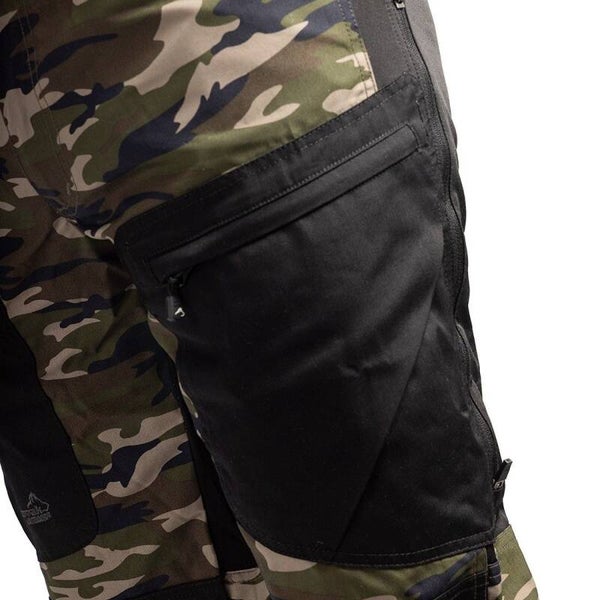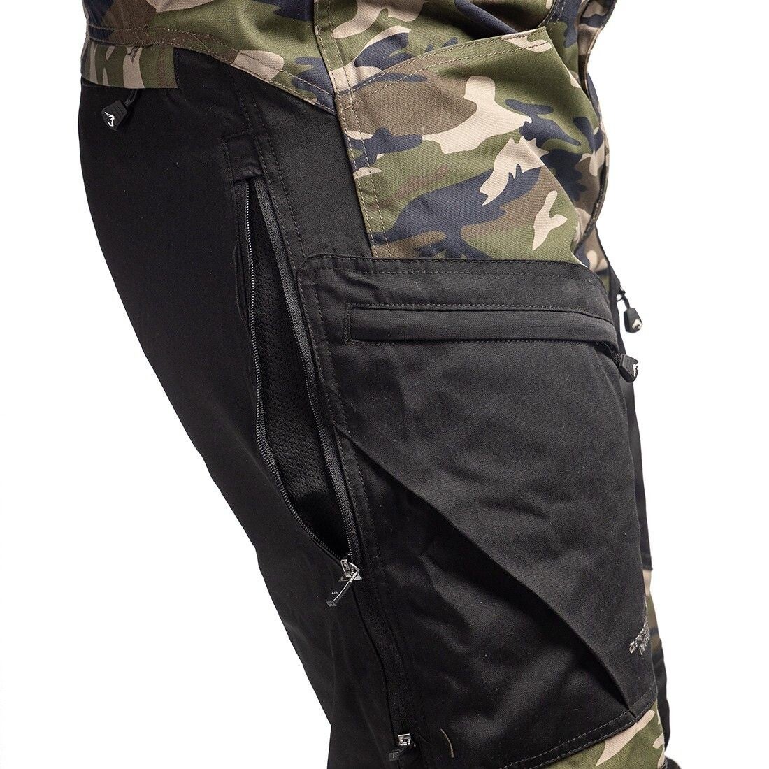 De broek is uitgerust met 5 zakken: één achterzak met rits, twee beenzakken en twee dijzakken met rits.