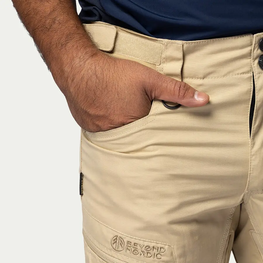 De BN004 Outdoor Pants van Beyond Nordic zijn de verbeterde versie van ons populairste wandelmodel – nu opnieuw ontworpen met betere prestaties, pasvorm en duurzaamheid. Gemaakt van onze sterke Terraflex™-stof en behandeld met Rudolf Bionic Eco DWR (een fluorkoolstofvrije waterafstotende coating), zijn deze broeken ontwikkeld om lichte regen, wind en vuil te weerstaan, terwijl ze comfortabel en ademend blijven tijdens al je activiteiten.