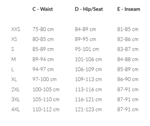 - 4-way stretch panels across the hips, seat, back of the thighs, and knees