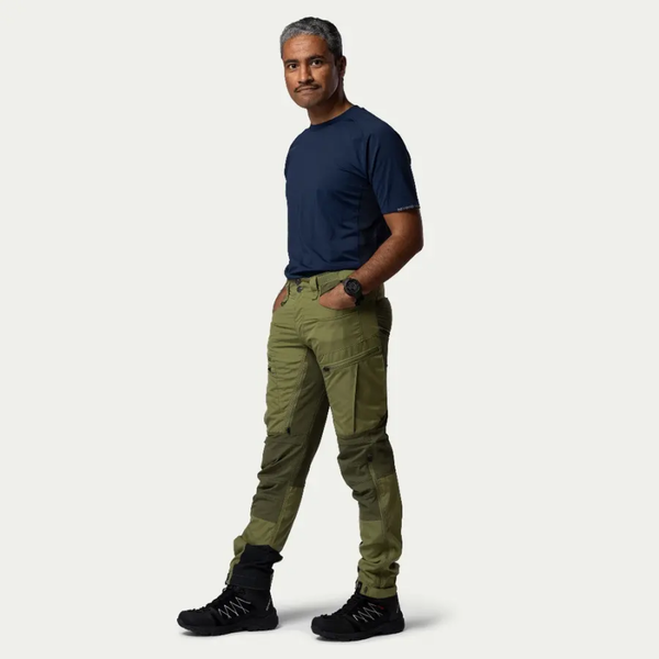 Verstevigde onderbeenstukken beschermen tegen slijtage door laarzen en ruw terrein, terwijl de schoenhaak en verstelbare pijpuiteinden zorgen voor een stevige pasvorm. Een versterkt kruis met driedubbele stiksels verhoogt de duurzaamheid bij intensief gebruik, en versterkte riemlussen met bevestigingspunt aan de voorkant zijn ideaal voor een karabijnhaak of klein gereedschap. Een dubbele knoopsluiting in de taille zorgt voor extra stabiliteit en comfort onderweg.